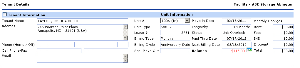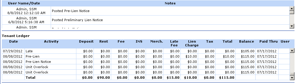 Tenants Move In Reserve Sch. Move Out Notes Reversal View Ledger View Notes Vew Email Log Renstate Unit Unlock Gate Inquiry Follow-up